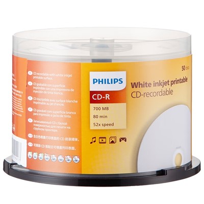 飛利浦(PHILIPS)CD-R 光盤 空白盤 刻錄光盤 碟片 700M 52速 數(shù)據(jù)存儲 50片裝