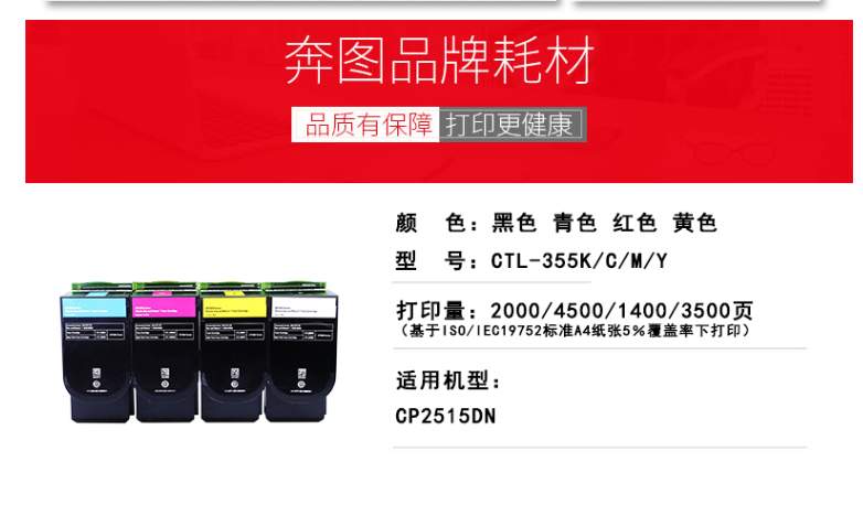 奔圖藍色粉盒CTL-355C標容 適合紅黑雙色打印機 CP2515DN